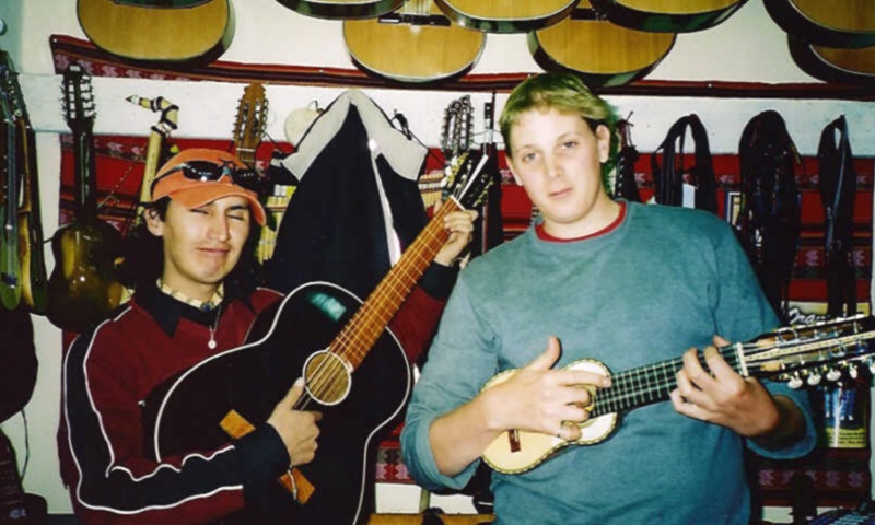 Dean rocks the charrango with Boris Chavez Gomez in La Paz.