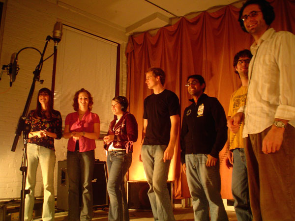 November 6 2005. As you may have noticed, the Muppets are a big musical influence for Andrew and me. Who isn’t moved by the sound of Muppets singing in unison? So in order to replicate a little of that magic, last month we brought nine of our friends (and a baby) into the studio to sing background vocals on several of our songs. Our invitation stated that singing talent was not required, and in fact was actively discouraged. God bless them, our friends were nicely off-key and exuberant. Most of them left early to catch the Feist show at Louis’, but we kept Jay, Steve, and Kurt around to read aloud from the poetry of Samuel Taylor Coleridge. It’ll all make sense when you hear the CD.